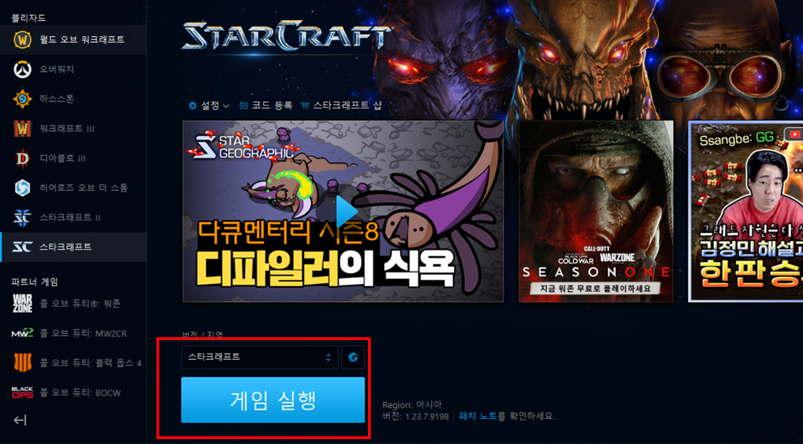 13. 설치가 끝나면 아래 게임 실행을 클릭하여 게임을 하시면 됩니다. 그럼 스타크래프트 무료다운로드 끝!